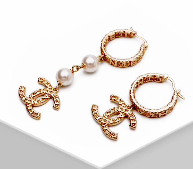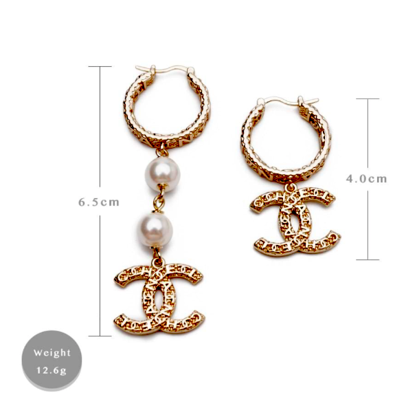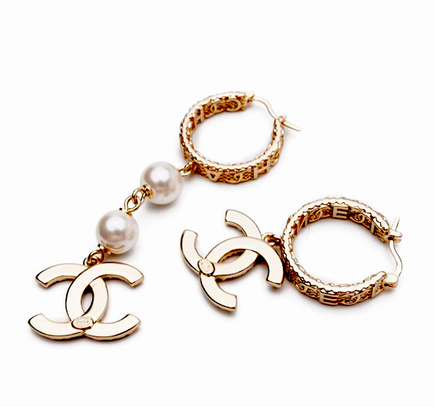 Chanel asymmetrical earrings | Chanel logo design signed hoop earrings