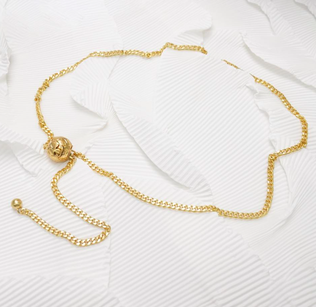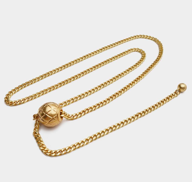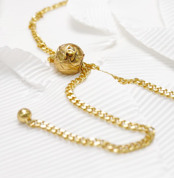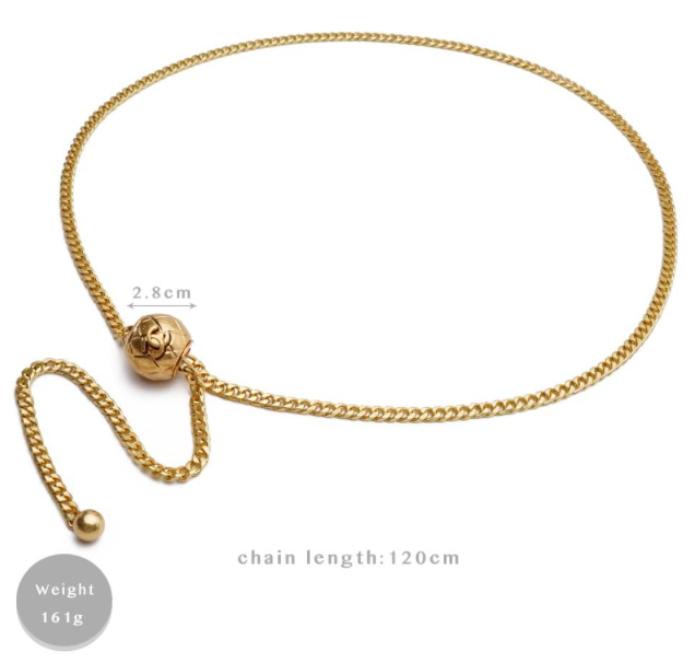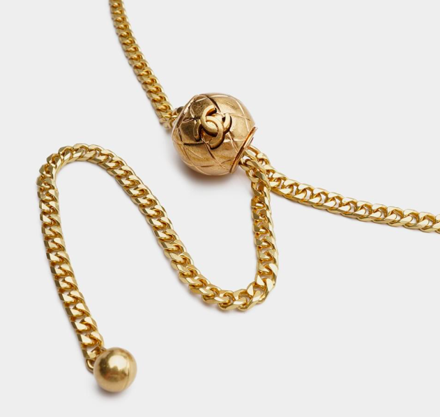 Chanel Gold Adjustable Belt. This yellow gold chain belt can be worn a variety of ways. Easy to use you simply press the logo and it adjusts to fit most size waists. It looks equally fabulous as a necklace.