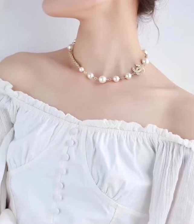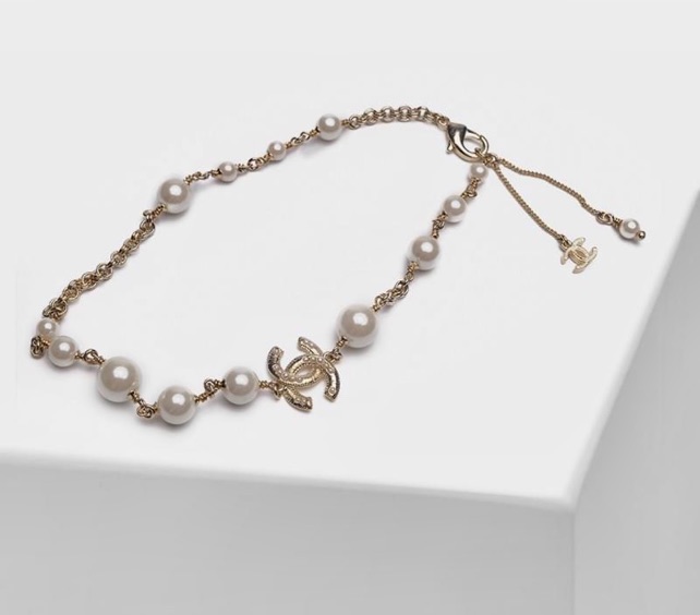 <meta name=”viewport” content=”width=device-width, initial-scale=1.0″>Chanel Short White Faux Pearl Gold Necklace